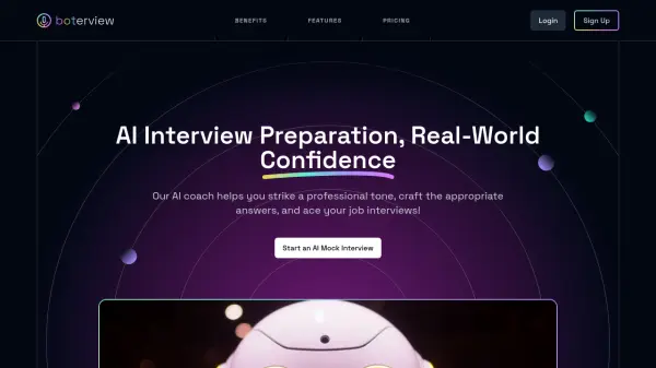 Boterview offers AI-driven mock interviews to help individuals improve their interview skills and build confidence. The platform uses speech-to-speech technology, emotion detection, and dynamic feedback to create a realistic and effective practice environment.Through interactive simulations, Boterview provides insights into user's stress, confidence, and nervousness levels, offering tailored feedback to improve responses and overall interview performance. This comprehensive approach assists users to present themselves professionally and align their answers with recruiter expectations.