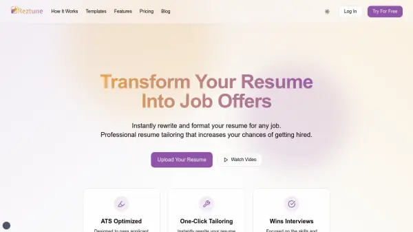 Reztune is an advanced AI-powered resume builder designed to transform standard resumes into tailored, job-specific applications. The platform analyzes job descriptions and automatically customizes resumes to highlight the most relevant skills and experiences, significantly increasing chances of getting interviews.With ATS-optimized templates and intelligent formatting, Reztune ensures resumes pass through applicant tracking systems and reach hiring managers. The platform offers a comprehensive suite of tools including application tracking, interview preparation resources, skills analysis, and secure PDF exports—all within an intuitive interface that makes professional resume creation accessible to job seekers at any career stage.